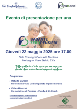 ‘BadanteZeroPensieri’, evento di presentazione del servizio organizzato da Confartigianato Imprese Sondrio con il patrocinio della Comunità Montana di Morbegno.
