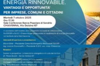 Condividere energia rinnovabile – Incontro a Chiavenna il 7 ottobre aperto a tutti