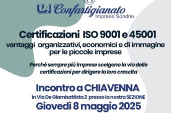 Certificazioni ISO 9001 e 45001 – Incontro formativo a Chiavenna, 8 maggio