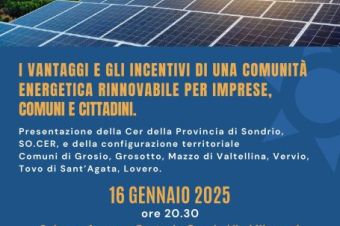I vantaggi e gli incentivi di una comunità energetica rinnovabile per imprese, comuni e cittadini – Grosio 16 gennaio