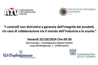 Advanced Technology Valve SpA e ITIS Enea Mattei uniti in un progetto di collaborazione fra il mondo dell’industria e la scuola. Venerdì 25 ottobre a Sondrio