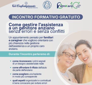 Un appuntamento pensato per familiari e caregiver che vogliono orientarsi con piŭ chiarezza nella gestione dell’assistenza a un proprio caro anziano.