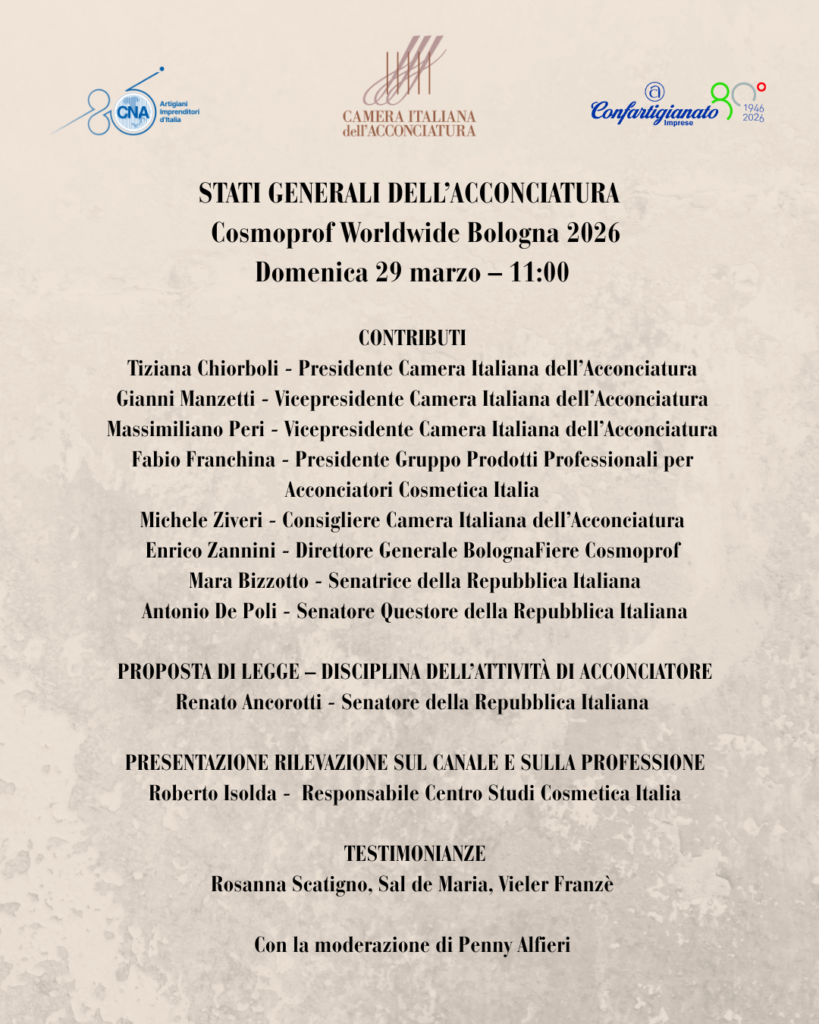 Saranno inoltre rese note le risultanze della rilevazione sul canale e sulla professione, a cura di Cosmetica Italia.