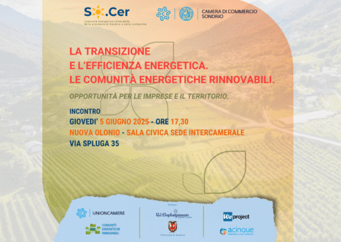 La Camera di Commercio di Sondrio, con la consulenza tecnica di SO.CER e Weprojetc, organizza un ciclo di eventi dedicati all’efficienza energetica e alle Comunità Energetiche Rinnovabili, con particolare focus sulla CER SOCER della provincia di Sondrio e della Lombardia.