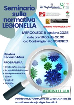 Legionella, seminario sulla normativa – Sondrio 8 ottobre 2025