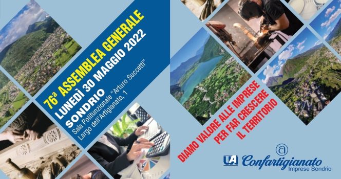 Lunedì 30 maggio 2022 alle ore 17.30 presso la Sala polifunzionale “Arturo Succetti” del CESAF in Sondrio Largo dell’Artigianato, 1 si terrà la 76^ Assemblea Generale dei soci di Confartigianato Imprese Sondrio.