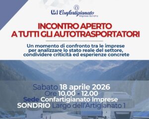Confartigianato Imprese Sondrio ospiterà venerdì 17 aprile 2026, alle ore 17.45, presso la propria sala conferenze in Largo dell’Artigianato 1, ...