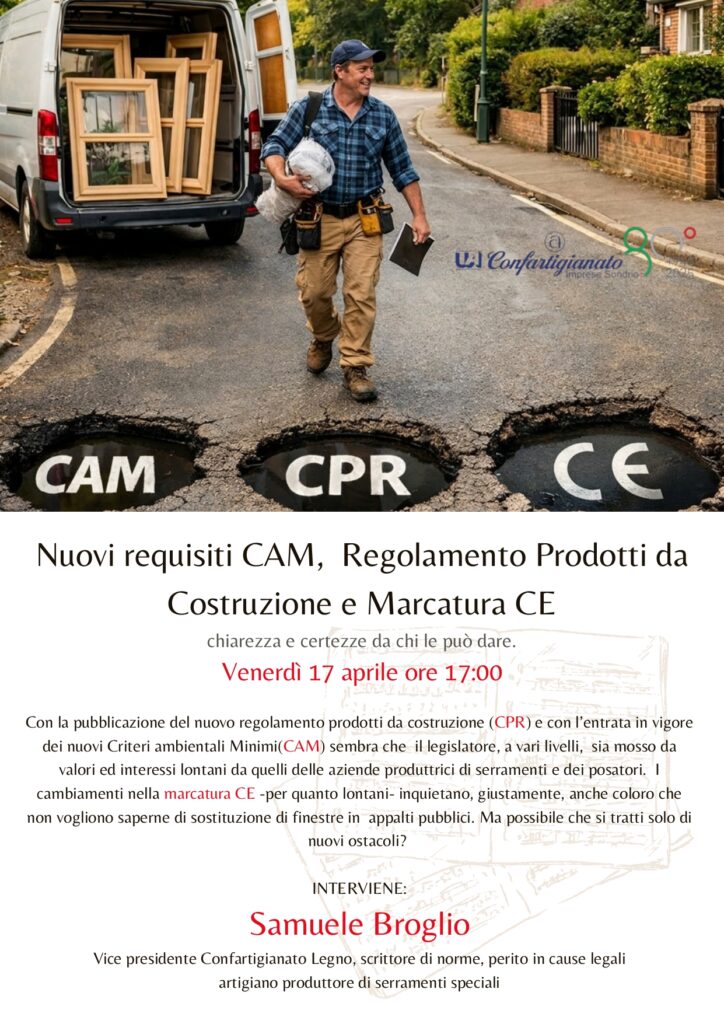 Alcun esempi? Cosa cambia – e da quando- nella marcatura CE dei serramenti con il nuovo regolamento prodotti da costruzione? E’ obbligatorio acquisire il Marchio Posa qualità – o altro marchio – per rispettare i nuovi CAM? I vincoli imposti dai nuovi CAM edilizia potranno mai essere ribaltati anche sui privati? Davvero la certificazione delle competenze livello EQF4 secondo le UNI 11673 è diventata obbligatoria?