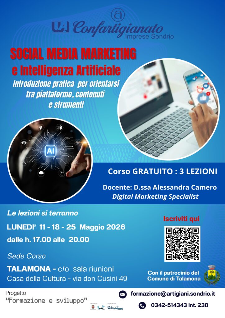 Social media marketing e Intelligenza artificiale – Corso a Talamona dall’11 maggio