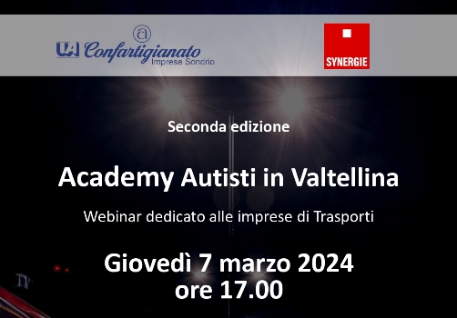 Dopo il grande successo della prima edizione svoltasi nel corso del 2022, Confartigianato Imprese Sondrio e Synergie Italia Agenzia per il Lavoro Spa in partnership con Risorse Italia, promuovono e organizzano una nuova edizione dell’innovativo progetto formativo ‘Academy Professione Autista in Valtellina’.