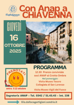 Info e programma: contattare Segreteria ANAP Sondrio 0342/51.43.43 – 392/94.26.184