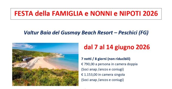 La quota non comprende: – eventuale supplemento camera singola 20,00 € – tassa di soggiorno 6,00€ – 20% di sconto riservato ai soci Anap