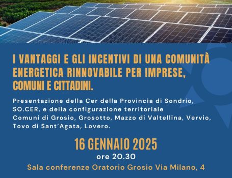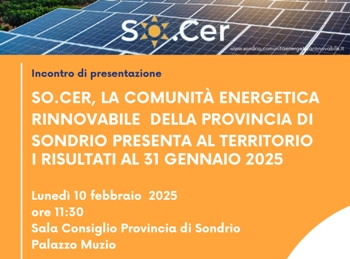 SO.CER, LA COMUNITÀ ENERGETICA RINNOVABILE DELLA PROVINCIA DI SONDRIO PRESENTA AL TERRITORIO I RISULTATI AL 31 GENNAIO 2025