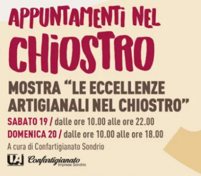 Uno spazio espositivo presso il Chiostro centrale del complesso Sant’Antonio nell’omonima Piazza di Morbegno che torna ad essere il cuore della manifestazione. Lo spazio anche quest’anno, avrà lo scopo di incuriosire i visitatori (pubblico, giovani e studenti) e mostrare loro uno spaccato delle abilità e dell’unicità dell’artigianato locale. E sarà anche un’occasione per rilanciare le opportunità di lavoro nelle piccole imprese in una fase contrassegnata dalla carenza di personale.