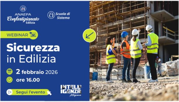 Grande partecipazione al webinar dello scorso 2 febbraio 2026 e dedicato alla sicurezza nei cantieri edili, organizzato da ANAEPA-Confartigianato Edilizia in collaborazione con la Scuola di Sistema di Confartigianato.