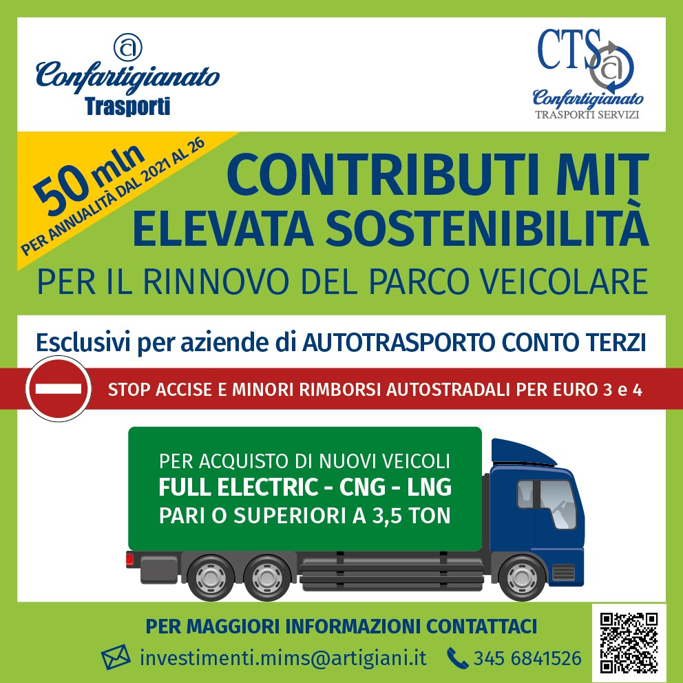 Trasporto Merci – Investimenti Elevata sostenibilità: al via il 15 marzo 2023 la 2° finestra per le richieste degli incentivi per parco veicolare aziendale – Servizio di assistenza Confartigianato