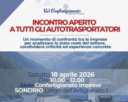 Confartigianato Imprese Sondrio rinnova quindi la richiesta di misure urgenti e mirate per sostenere il comparto, garantire la continuità dei servizi e salvaguardare un settore strategico per il territorio ed invita tutti gli autotrasportatori della provincia di Sondrio ad un incontro aperto per un confronto sull’emergenza che si terrà sabato 18 aprile alle ore 10.00 presso la sede di Confartigianato Imprese, in Largo dell’Artigianato, 1 a Sondrio.